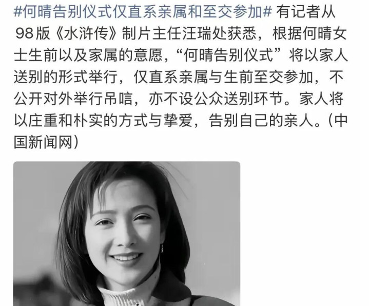 倾盆新闻《何晴因病死亡,曾出演〈红楼梦〉〈西纪行〉等经典剧集》,2024年12月14日