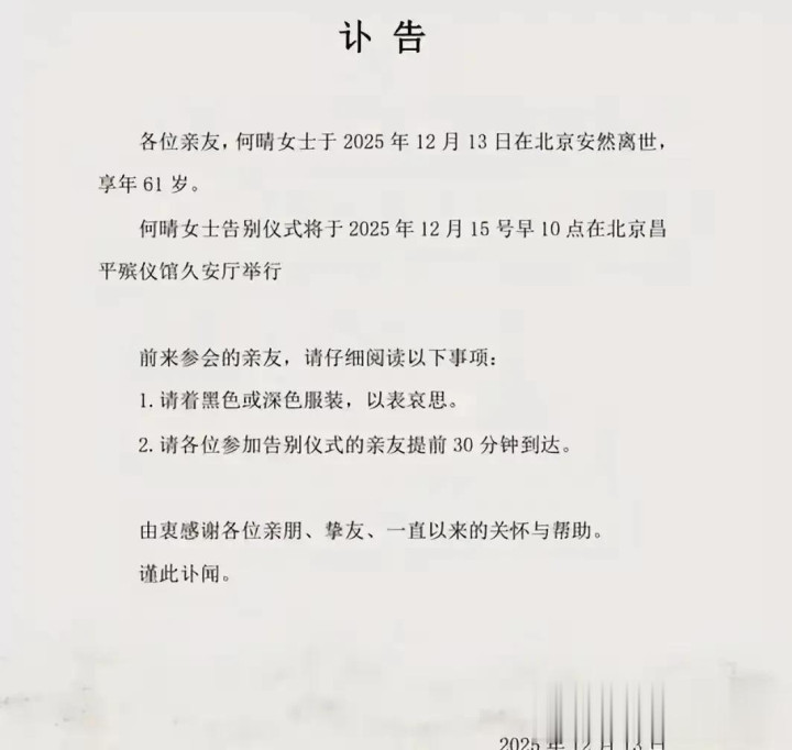 何晴这10年,一直很低调。她不念念让不雅众知谈她生病的式样,她但愿全国记着的,是荧幕上阿谁美丽的她。是以悼念会定在12月15号上昼10点,不公开,唯有家东谈主和几个好一又友能去。