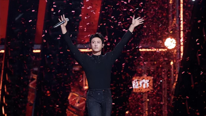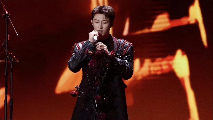 当晚,黄景瑜衣裳玄色亮片西装,独唱《玫瑰窃贼》。
